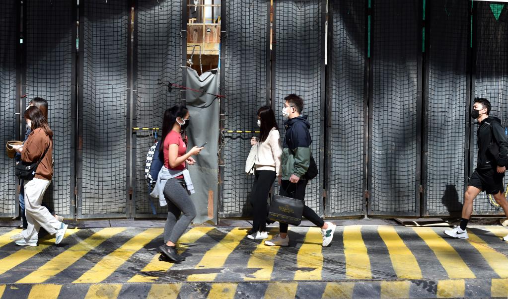 3月1日,在香港中环,市民佩戴口罩出行。新华社记者 卢炳辉 摄