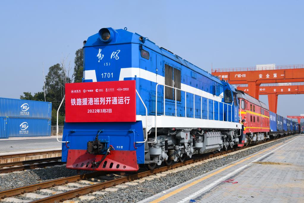 3月2日,首趟“中央援港 同心抗疫”铁路援港班列驶出深圳平湖南国家物流枢纽。新华社记者 梁旭 摄