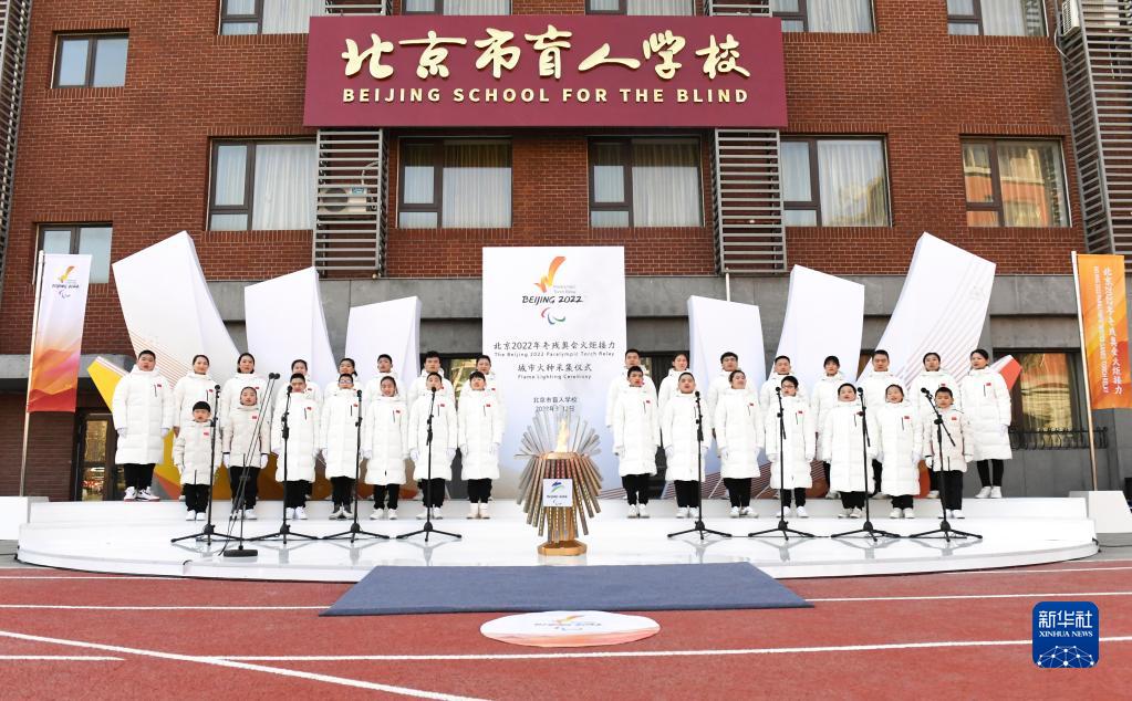 3月2日,“光明之火”的火种在30名盲校师生合唱歌曲《光明》中被点燃。新华社记者 夏一方 摄