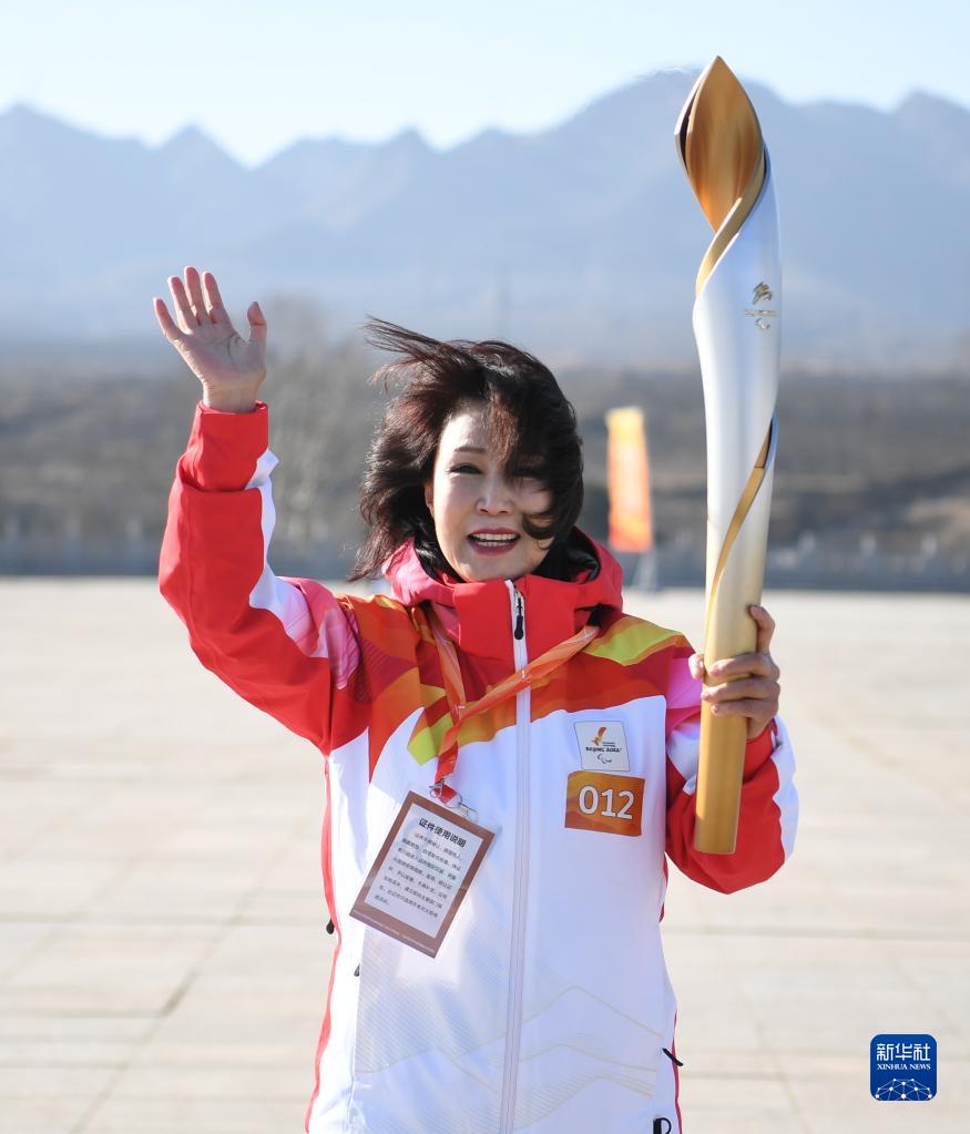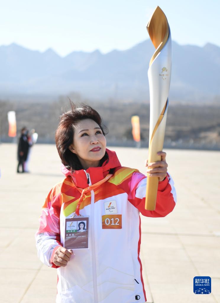 3月2日,火炬手许荷英进行火种火炬传递。新华社记者 朱旭东 摄