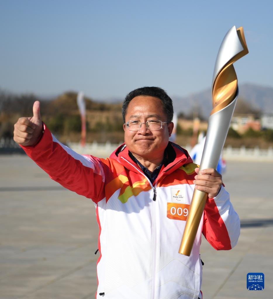 3月2日,火炬手张京政在进行火种火炬传递。新华社记者 朱旭东 摄