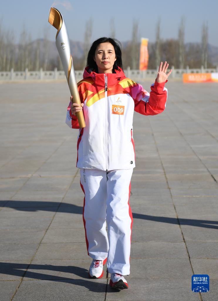 3月2日,火炬手赵会芳在进行火种火炬传递。新华社记者 曹国厂 摄