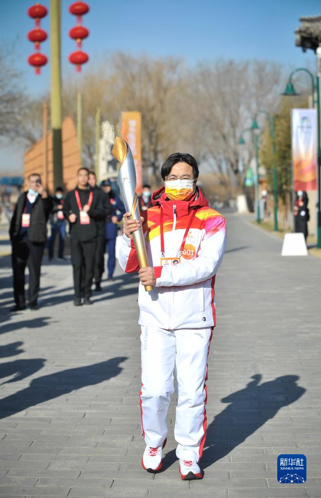 3月2日,火炬手王超山在城市火种火炬传递中。新华社记者 李任滋 摄