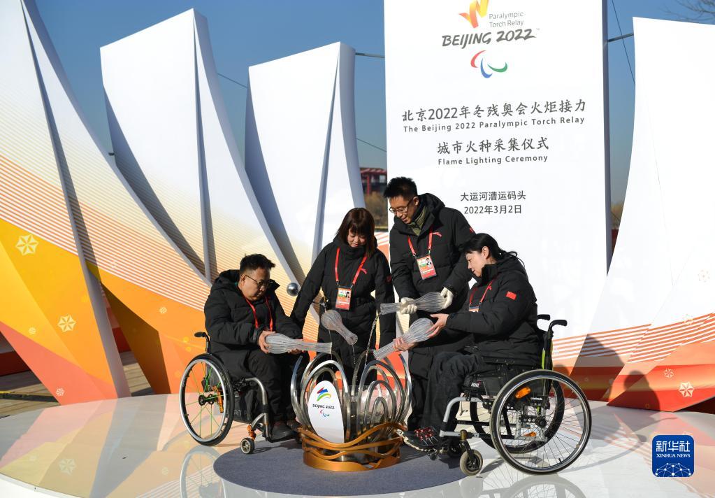 3月2日,采火人杜鹏、夏虹、陈飞、齐凯利(从左至右)共同启动采火装置,点燃“源流之火”。新华社记者 李任滋 摄