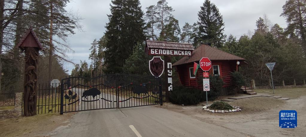 这是3月2日在白俄罗斯和波兰边境拍摄的别洛韦日森林自然保护区的一个入口。新华社记者 张继业 摄