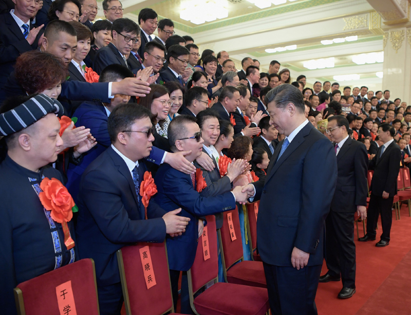 2019年5月16日,党和国家领导人习近平、李克强、王沪宁等在北京人民大会堂会见第六次全国自强模范暨助残先进表彰大会代表。新华社记者 李学仁 摄