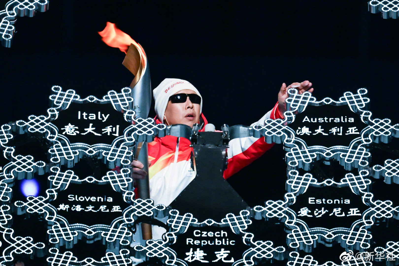 冬残奥会开幕式火炬传递仪式一共8棒,火炬手全部为残疾人运动员。传递最后一棒的盲人火炬手李端走上点火台,将火炬插入雪花火炬台内,观众为他呐喊“加油”,全场爆发雷鸣掌声!网友:耐心,恒心,支持,终会迎接光明!(摄影:李尕、兰红光、吴壮)
