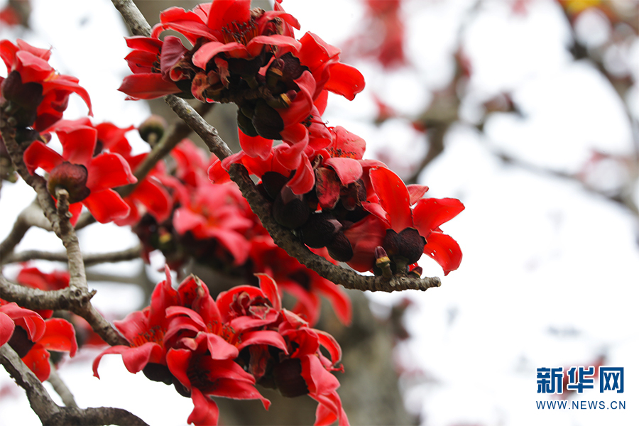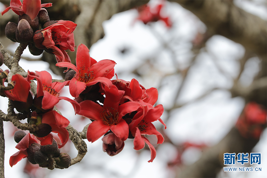 火红的木棉花(2月21日摄)。 新华网发(施甸县融媒体中心供图)