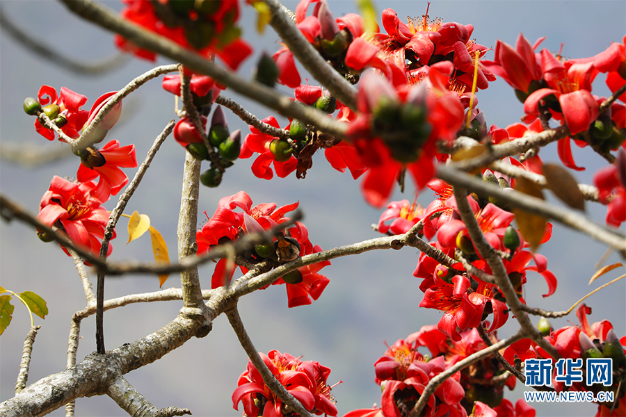 火红的木棉花绽放枝头(2月21日摄)。新华网发(施甸县融媒体中心供图)