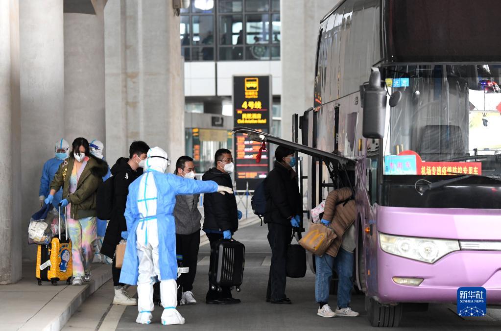 3月5日,中国公民乘坐临时航班抵达郑州新郑国际机场,准备上车前往隔离酒店。当日上午9时46分,第二架接返自乌克兰撤离中国公民临时航班安全抵达郑州。新华社记者 郝源 摄