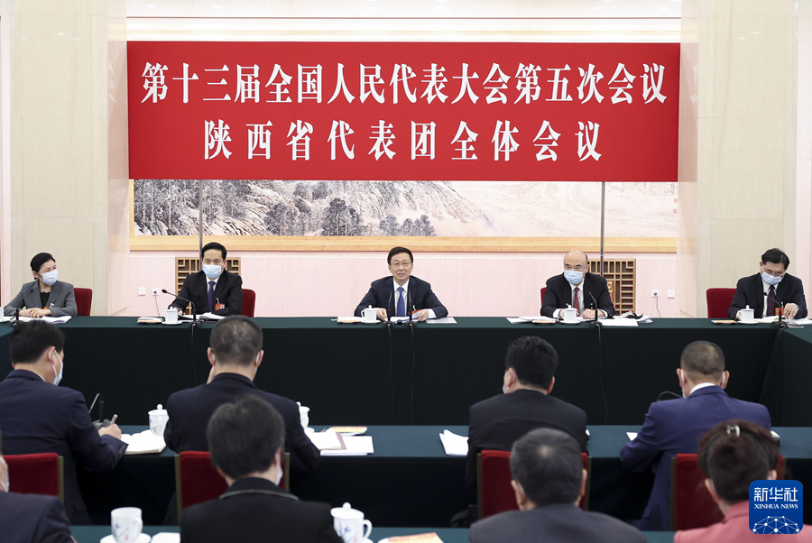 3月5日,中共中央政治局常委、国务院副总理韩正参加十三届全国人大五次会议陕西代表团的审议。新华社记者 丁海涛 摄