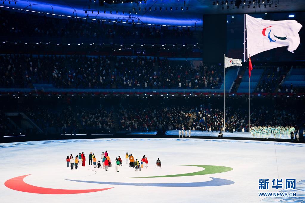 伴随着残奥会会旗冉冉升起,庄严磅礴的旋律在体育场上空回荡,向世界展示了中国残疾人昂扬奋进的精神风貌,传递着自强不息的中国力量。