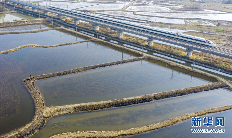 3月3日,安徽省合肥市庐江县柯坦镇枣岗村,农民正在给虾苗投食,虾田“春耕”一片繁忙。