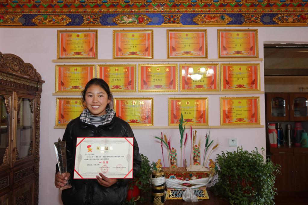 在达瓦坚参的内心,最令他得意的不是收入的连年增加,而是儿女们沉甸甸的奖状。女儿普巴拉姆获得数学竞赛一等奖,儿子普布次仁短跑获得第二名……一张张奖状挂满整面墙壁。