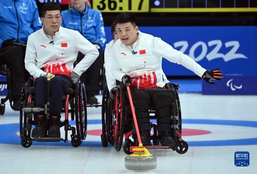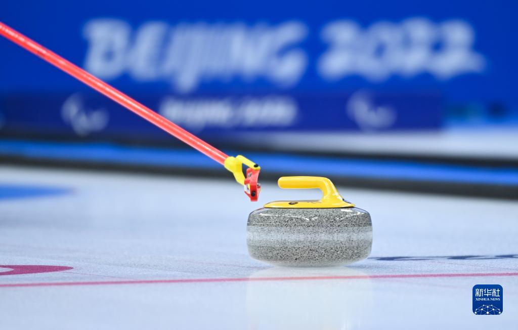 当日,在北京国家游泳中心“冰立方”举行的北京2022年冬残奥会轮椅冰壶循环赛中,中国队以9比3战胜爱沙尼亚队。