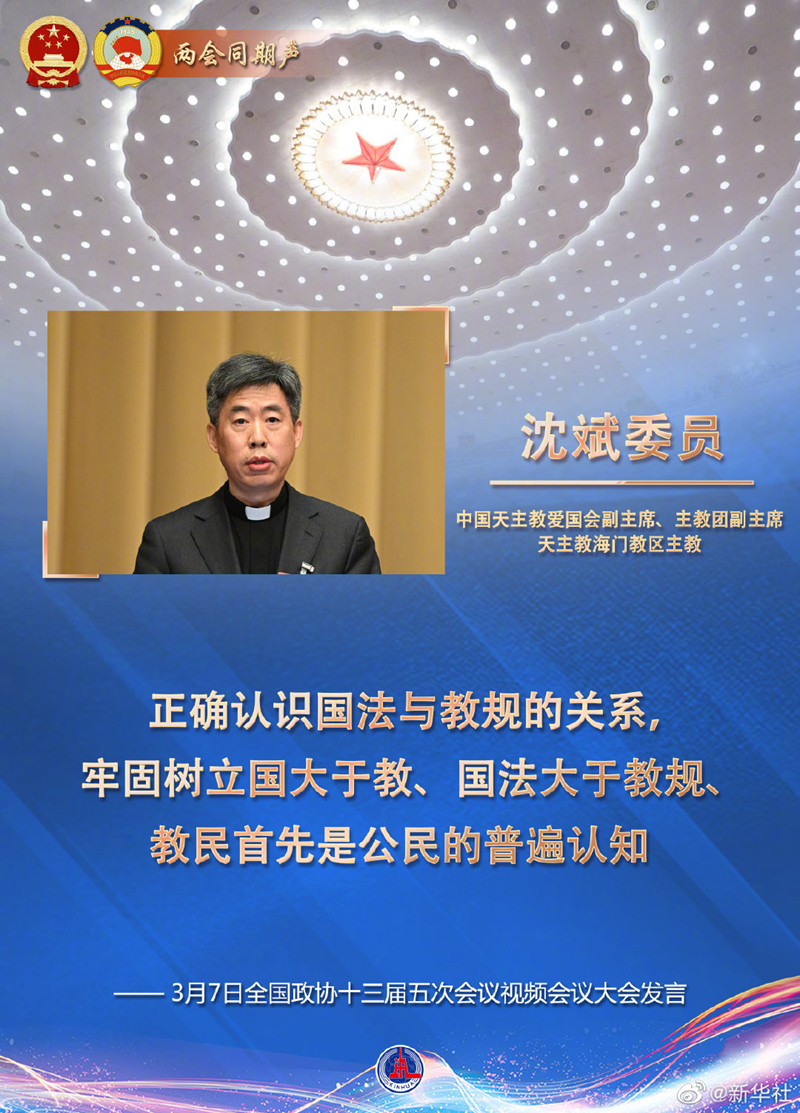 7日下午,全国政协十三届五次会议举行视频会议。12名委员作大会发言。沈斌委员代表宗教界发言。