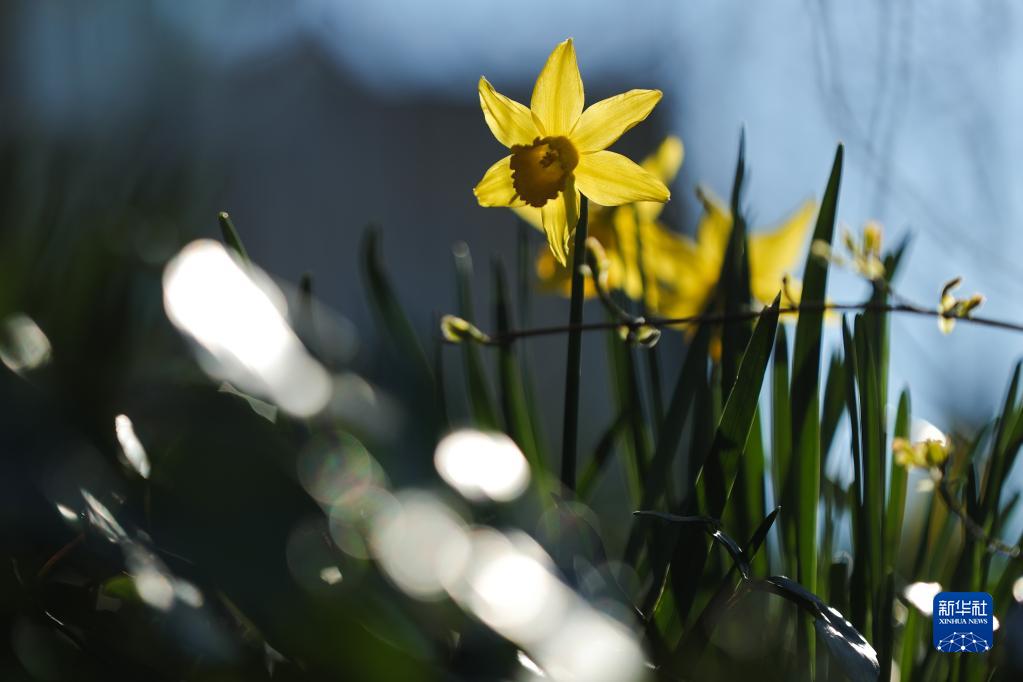 3月7日,水仙花在比利时布鲁塞尔的五十周年纪念公园中绽放。