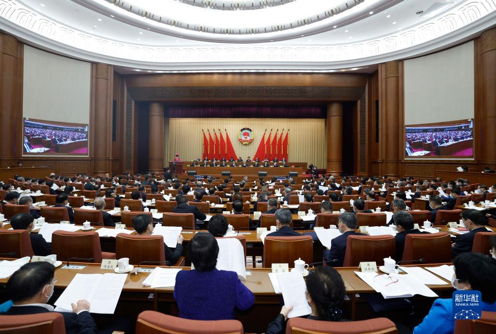 3月7日,全国政协十三届五次会议举行视频会议。会议在全国政协机关设主会场,在委员驻地设分会场。这是主会场。新华社记者 刘彬 摄