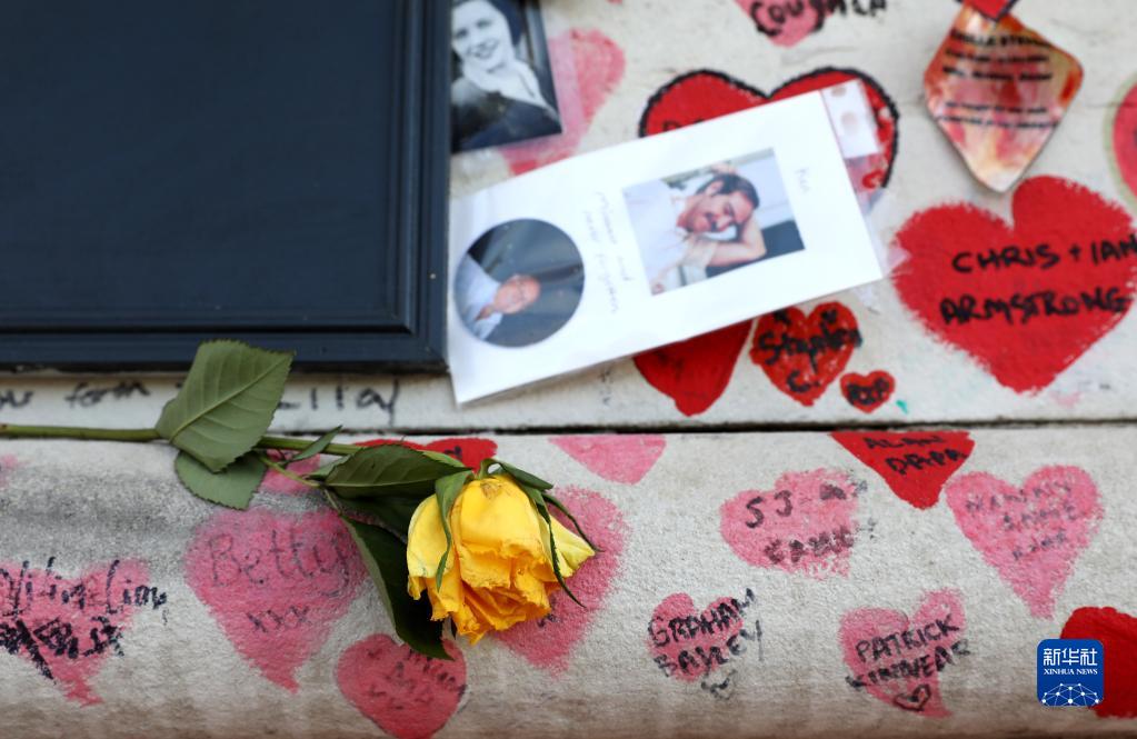 这是3月7日在英国伦敦拍摄的国家新冠纪念墙上的留言和照片。