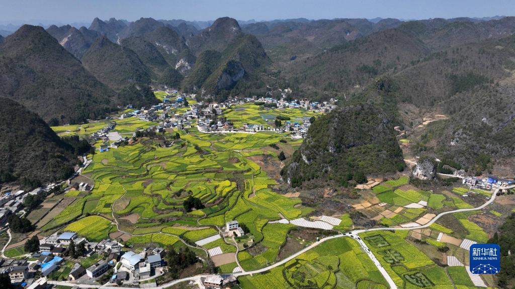3月8日拍摄的贵州省罗甸县边阳镇油海村景色(无人机照片)。