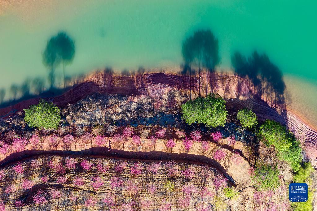 3月8日拍摄的浙江省杭州市淳安县界首乡春日景色(无人机照片)。