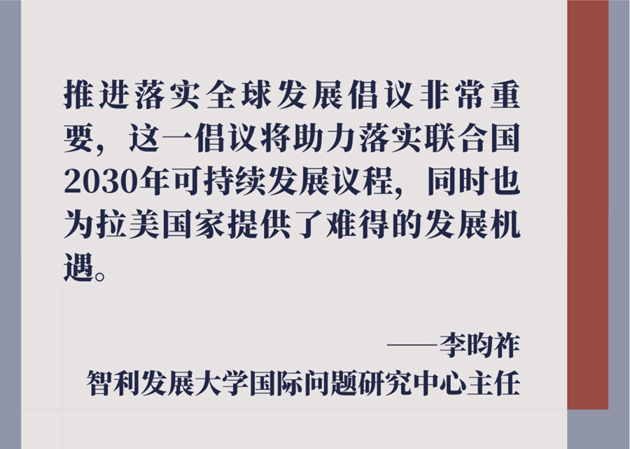 智利发展大学国际问题研究中心主任李昀祚认为,推进落实全球发展倡议非常重要,这一倡议将助力落实联合国2030年可持续发展议程,同时也为拉美国家提供了难得的发展机遇。(参与记者:李学军、张玉亮、罗毓、郑一晗、苏小坡、吴长伟、卞卓丹、车宏亮、唐璐、尹南、张笑然、刘春涛、石中玉、陈浩)