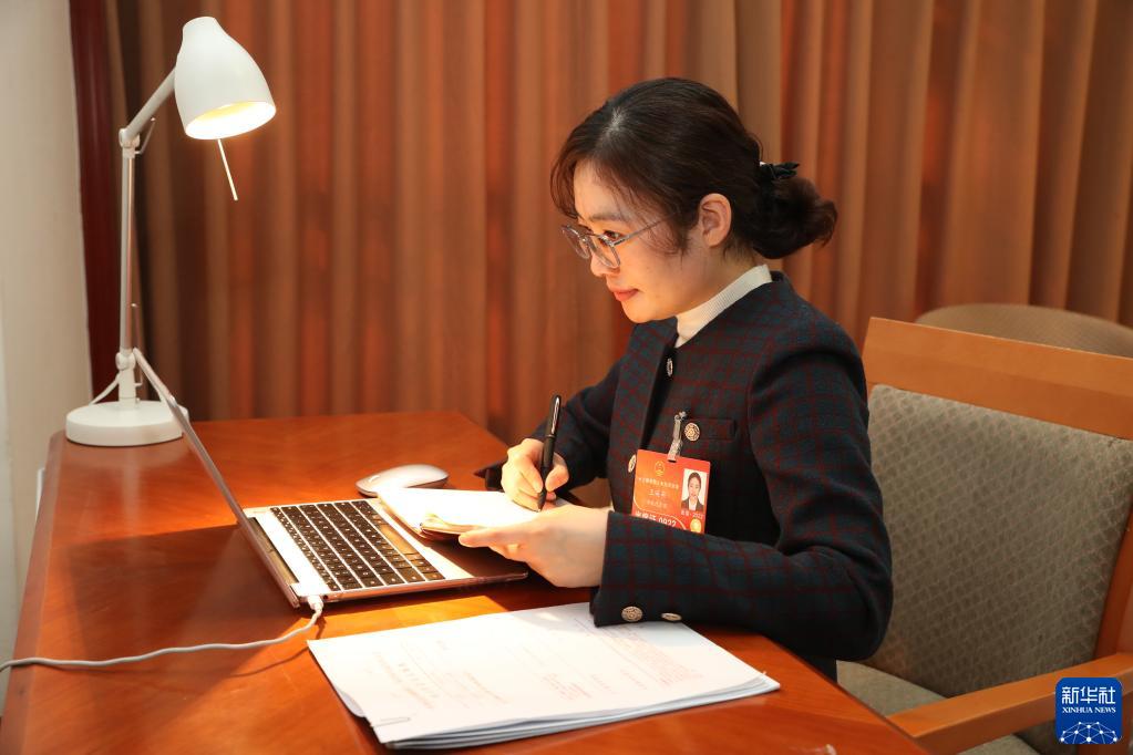 3月6日,王萌萌在安徽代表团驻地查阅资料。
