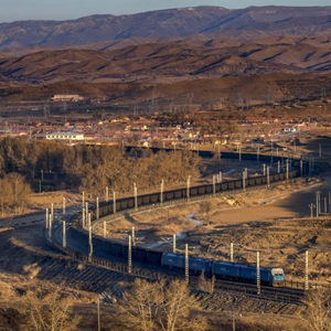 2021年12月23日,一列万吨煤炭列车行驶在内蒙古乌兰察布市卓资县境内。新华社发(纪恩泉摄)