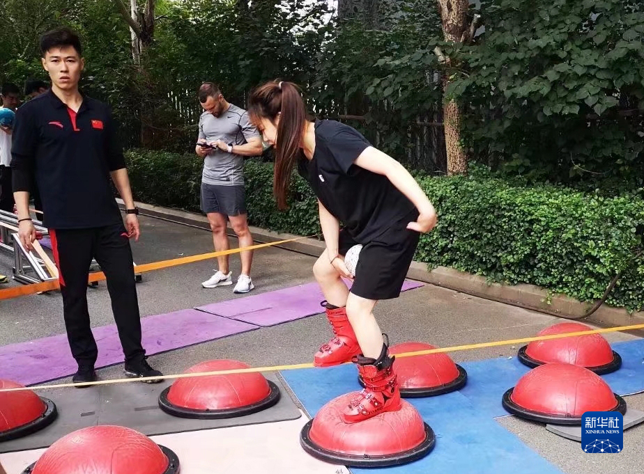 2021年夏天,张梦秋(右)在训练基地进行训练。