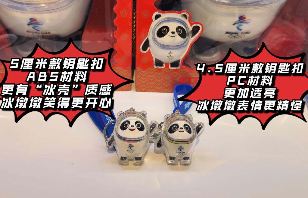 “4.5厘米款外壳是PC材料,更加透亮,而5厘米款是食品级ABS材料,更有‘冰壳’质感。两款钥匙扣‘冰墩墩’的表情也不同,4.5厘米的显得精怪一点,5厘米款笑得更开心。官方渠道出售的都是官方正品,不同款式也是为了尽可能满足消费者的不同需求。”徐国秀说。