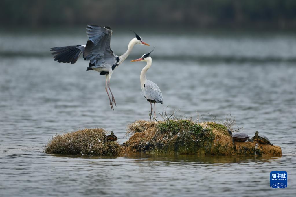 3月10日,在贵州省贵阳市观山湖公园,两只鸟儿在嬉戏。