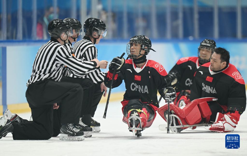 当日,在国家体育馆举行的北京2022冬残奥会残奥冰球决赛资格赛中,中国队以4比3战胜捷克队。