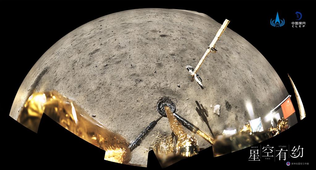2020年12月4日,国家航天局公布了探月工程嫦娥五号探测器在月球表面展示国旗的照片。 (新华社发 国家航天局供图)