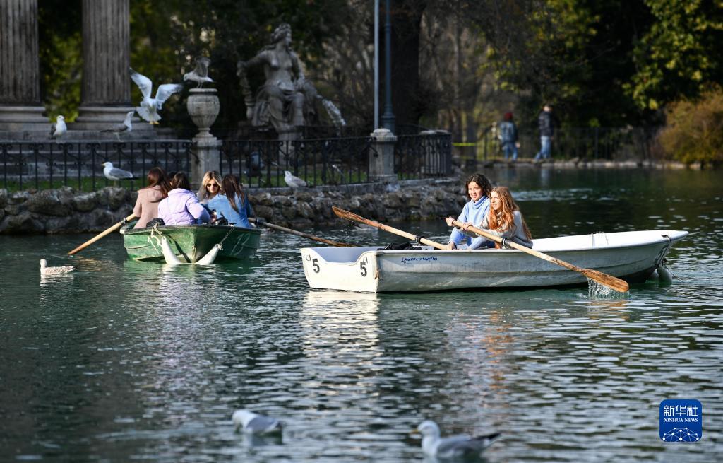 3月11日,人们在意大利罗马的博尔盖塞公园划船。