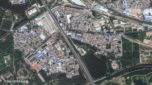 这是北京市朝阳区将台乡2015年和2020年的卫星图对比。
