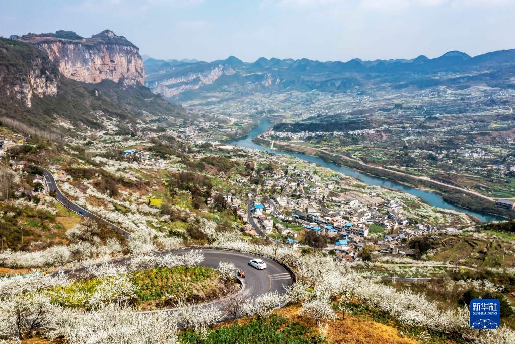3月12日拍摄的贵州省黔西市大关镇丘林村春色(无人机照片)。