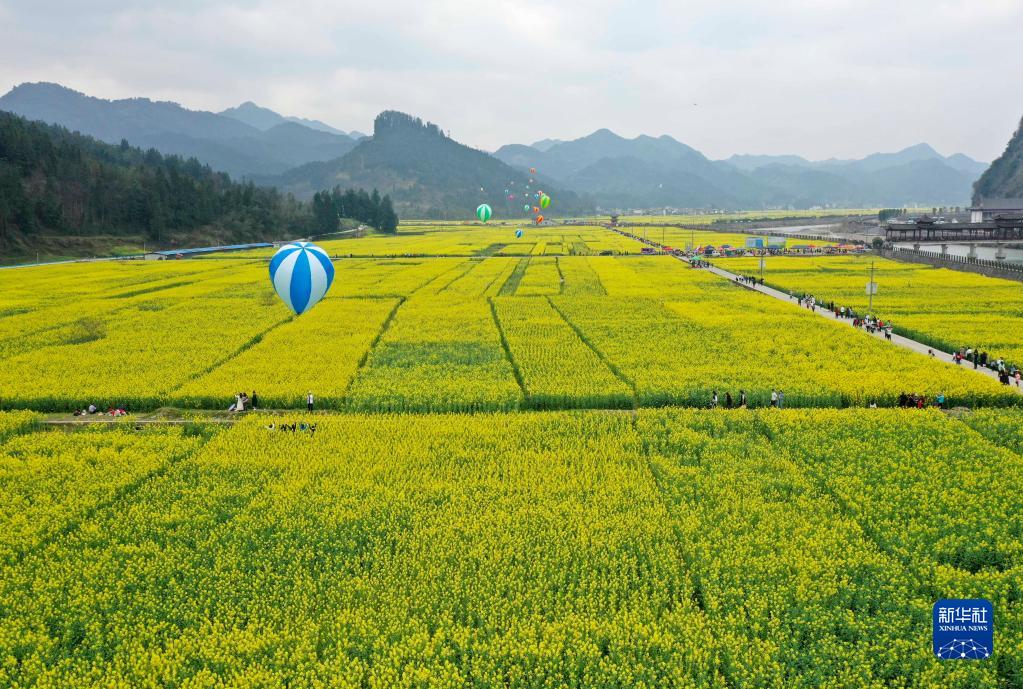 3月12日拍摄的贵州省铜仁市碧江区瓦屋乡油菜花田景色(无人机照片)。