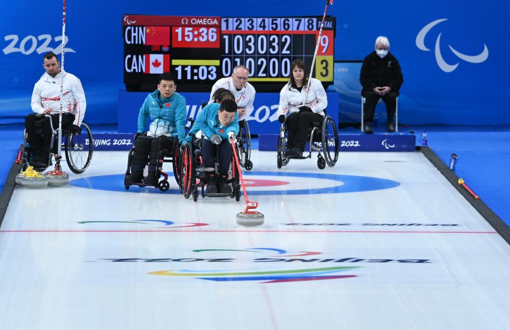 北京冬残奥会轮椅冰壶项目当日在国家游泳中心“冰立方”展开半决赛争夺,中国队以9:5战胜加拿大队,瑞典队6:4战胜斯洛伐克队。中国队将在12日与瑞典队争夺冠军。加拿大队在11日稍晚的铜牌争夺战中,以8:3战胜斯洛伐克队。