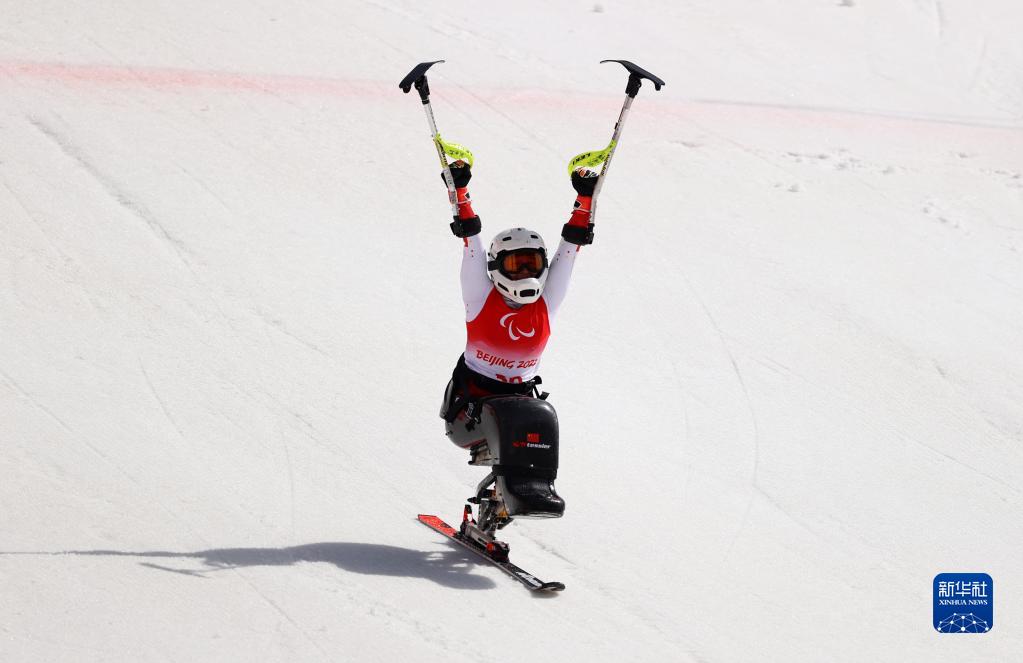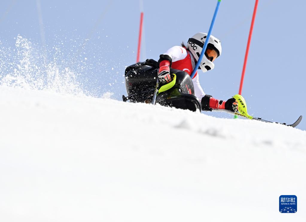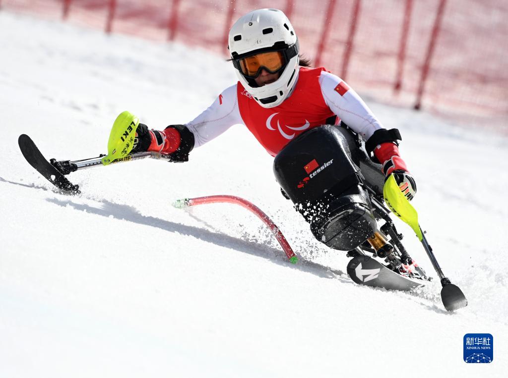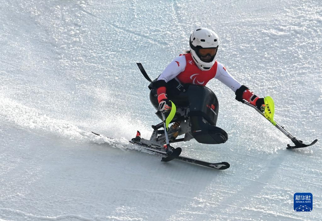 当日,北京2022年冬残奥会残奥高山滑雪项目女子回转(坐姿)比赛在延庆国家高山滑雪中心举行。