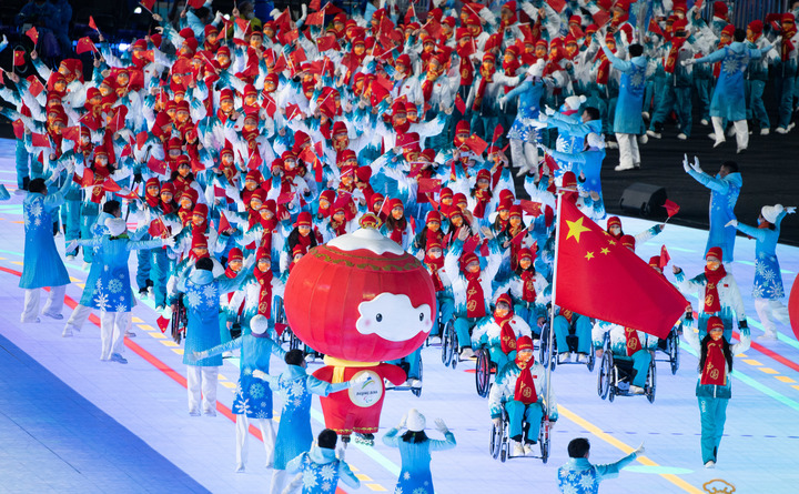 3月4日晚,北京2022年冬残奥会开幕式在北京国家体育场举行,中国代表团在开幕式上入场。新华社记者邬惠我摄