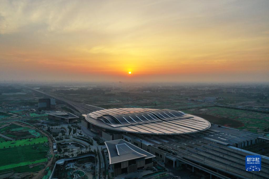 这是京雄城际铁路雄安站(2021年7月1日摄,无人机照片)。 新华社记者 牟宇 摄
