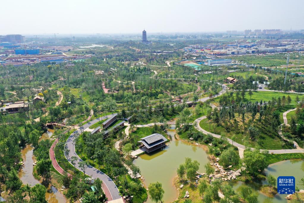 这是雄安新区悦容公园北苑内的景色(2021年9月1日摄,无人机照片)。新华社记者 牟宇 摄