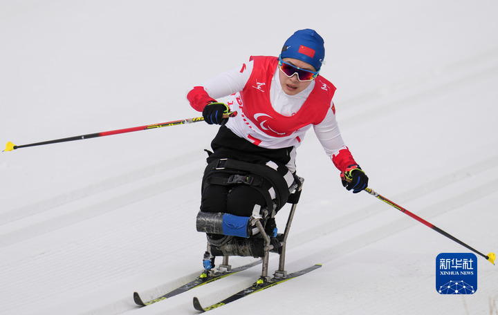 3月13日,中国队选手单怡霖在北京冬残奥会残奥越野滑雪混合接力4X2.5公里决赛中。新华社记者胡虎虎摄