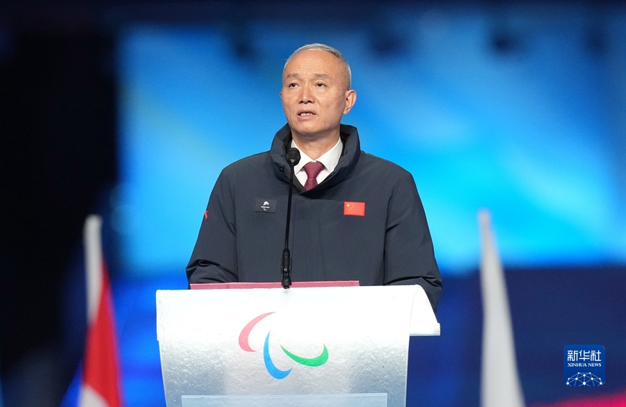 3月13日晚,北京2022年冬残奥会闭幕式在北京国家体育场举行。 这是北京冬奥组委主席蔡奇致辞。 新华社记者 吴壮 摄