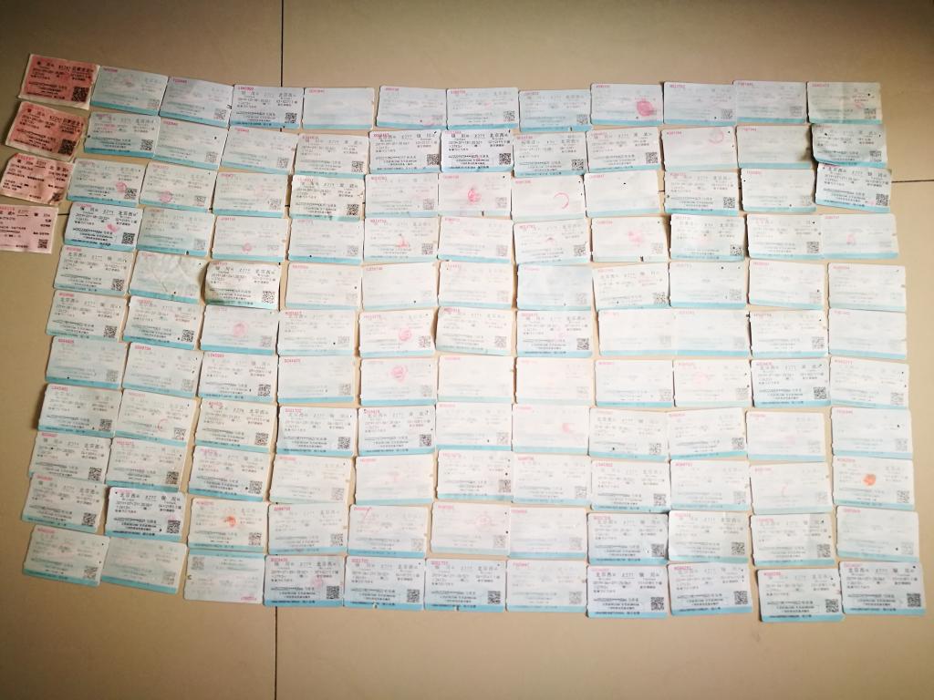 马奕菲父母收集的部分往返北京学音乐的火车票。