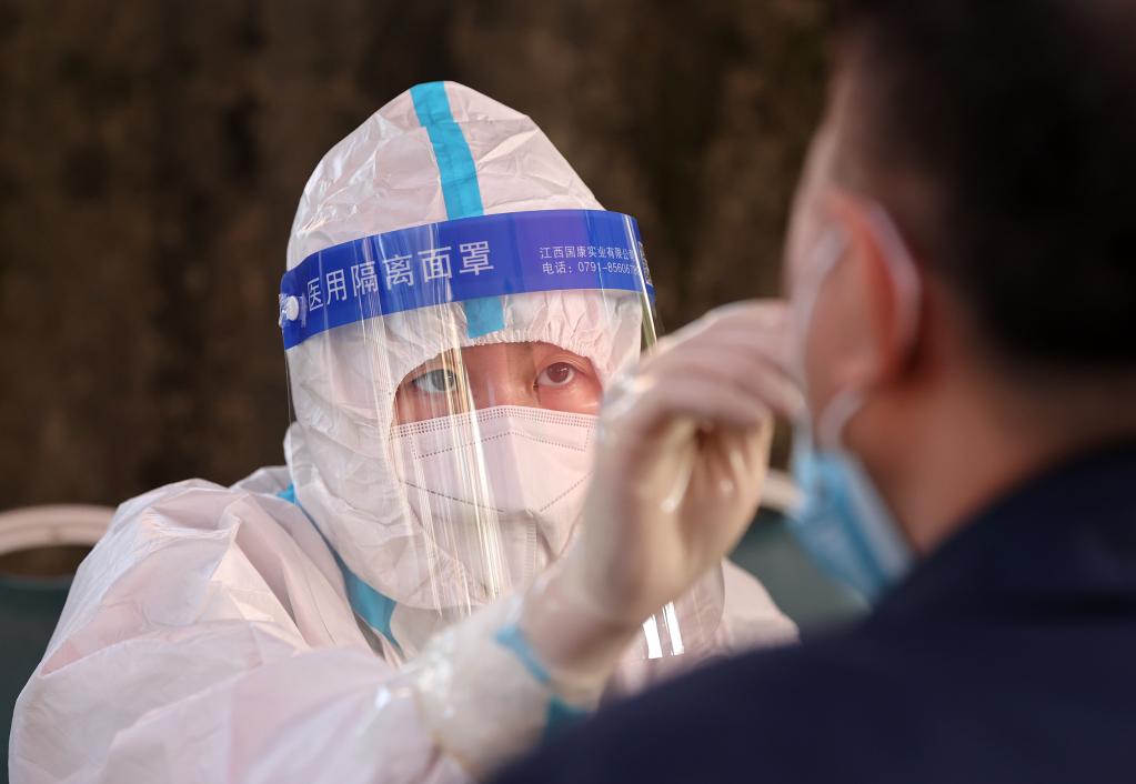 3月13日,在泉州市丰泽区一处核酸检测点,医务人员为市民进行核酸采样。当日,福建省泉州市丰泽区有序开展核酸检测工作。新华社发(张九强摄)
