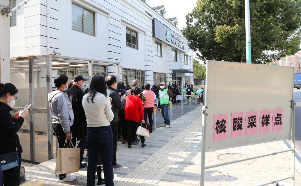 3月11日,市民在上海市闵行区七宝社区卫生服务中心华林社区卫生服务站排队进行核酸采样。新华社记者方喆 摄