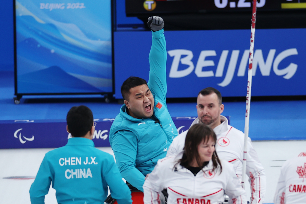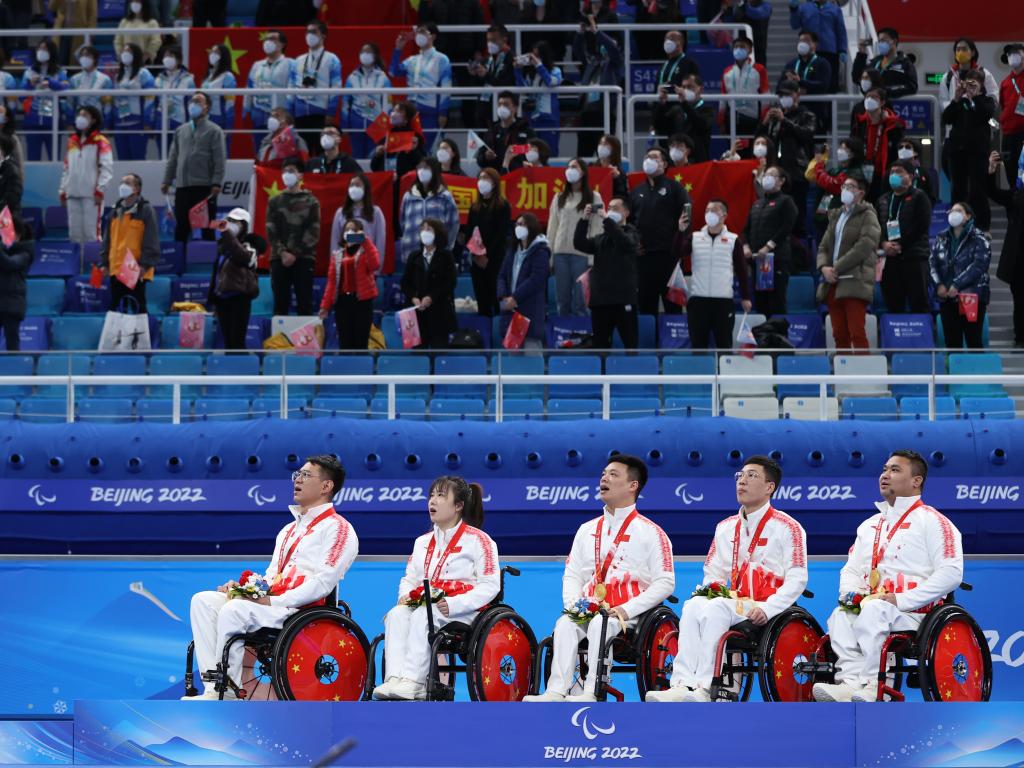 中国轮椅冰壶队为中国代表团