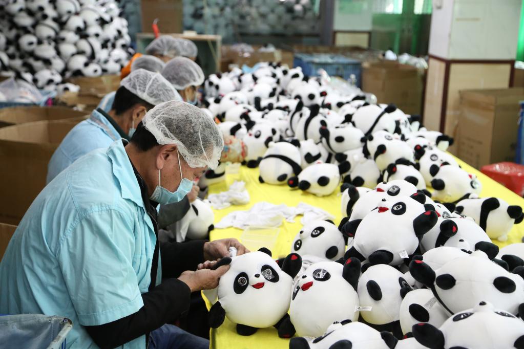 “冰墩墩”的毛绒玩具特许生产商来自江苏和福建等地。“冰墩墩”的制作工艺很复杂,需要开版、绣花、印花、裁剪、缝纫、装订、包装等多个工序,有时中途还要进行调整。