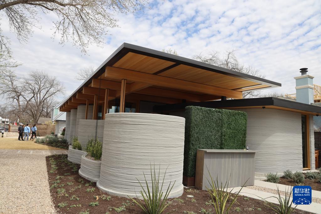 这是3月13日在美国奥斯汀举行的“西南偏南”多元创新大会和艺术节上拍摄的使用3D打印水泥建造的房屋。新华社记者 徐剑梅 摄